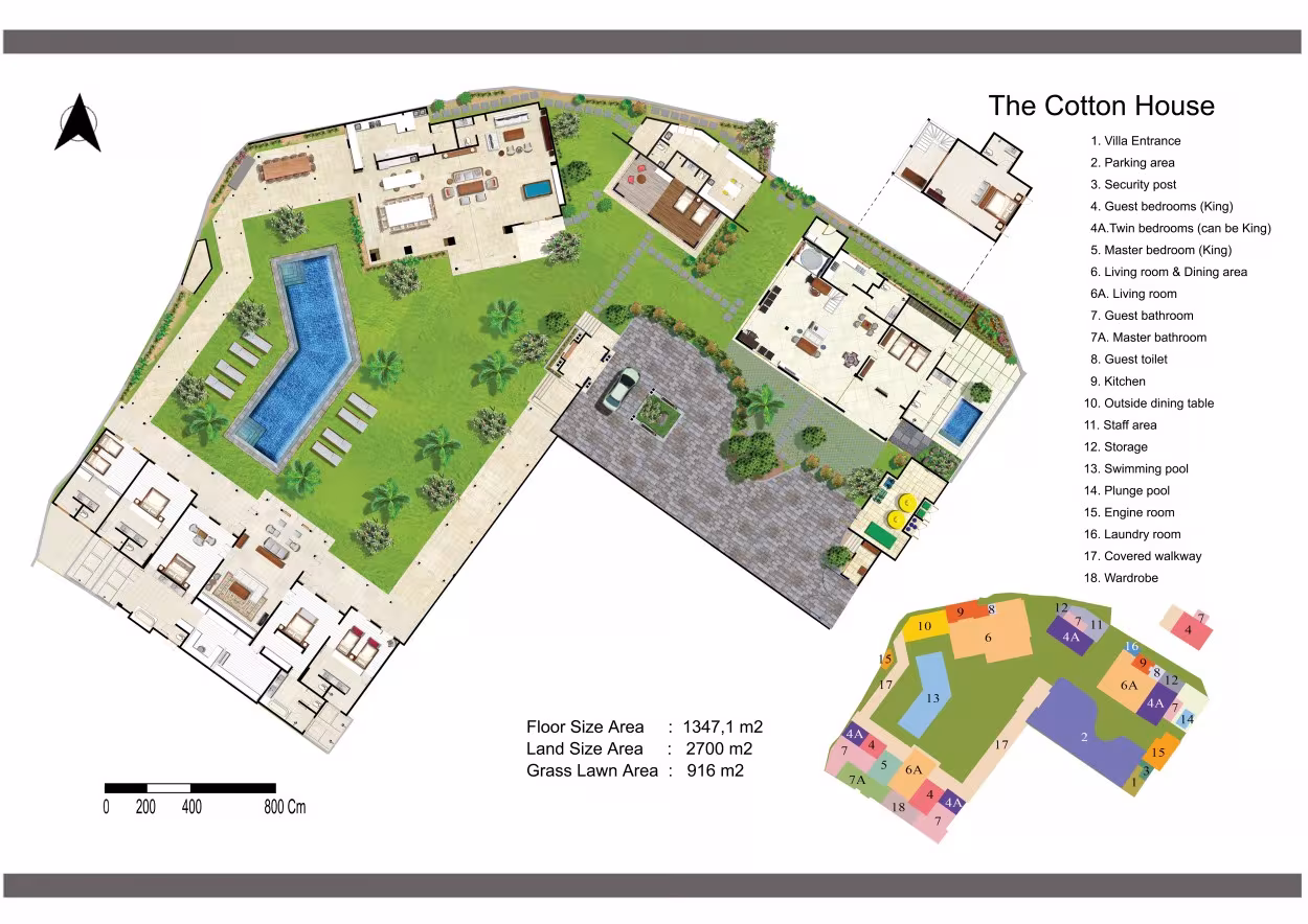 Villa The Cotton House ist eine 8-Schlafzimmer-Villa auf Bali, die inmitten der Viertel Seminyak und Petitenget liegt. Ihre Architektur ist von den großen Häusern der Karibik inspiriert. Villa The Cotton House liegt auf einem Grundstück von fast ¾ Acre. Architektin Hetta Thynne hat eine wunderschöne Kombination aus Unterhaltungs-, Entspannungs- und Wohnräumen geschaffen. Die Villa kann von großen Gruppen von Familien und Freunden genutzt werden und ihr weitläufiger Unterhaltungsbereich und der üppige Rasen eignen sich für große Veranstaltungen wie Hochzeiten und Familientreffen.