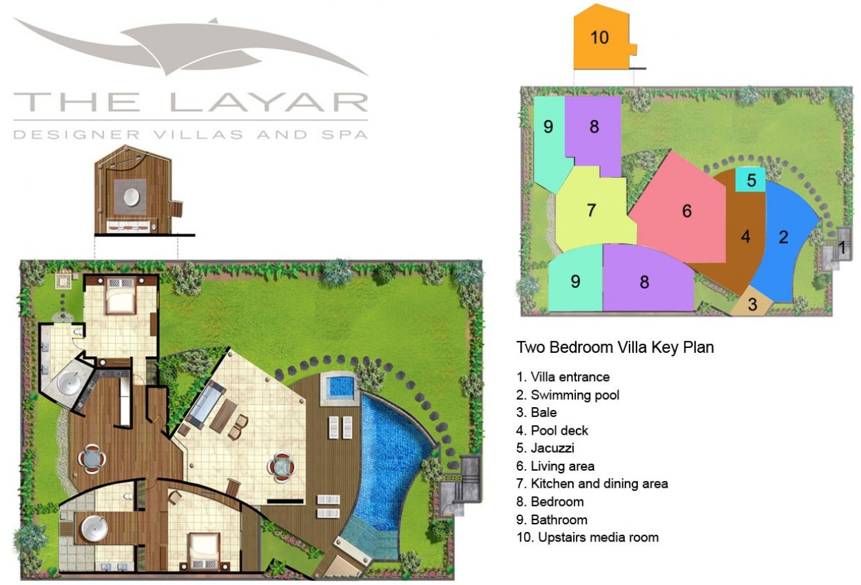 Villa The Layar with 2 bedroom in the heart of Seminyak, feature a 2-tiered light-flooded living area. Part of The Layar's villa complex, each villa is individually defined by angled roofs and curved walls. For a faultless fusion of inspired architecture and easy tropical living, The Layar is in a class of its own. This iconic enclave in the heart of Seminyak comprises 23 villas, each set in its own very private garden sanctuary fanning out from a central colonnade of mature flowering trees.